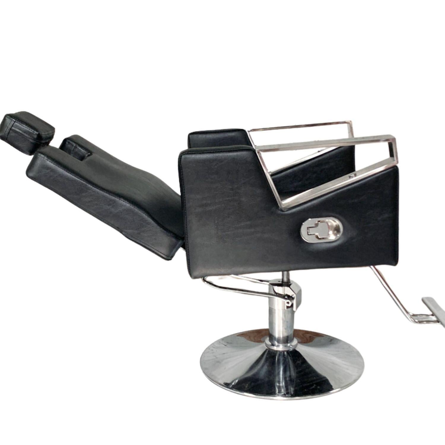 Respaldo y asiento tapizados y revestidos en piel sintética negra con costuras de alta calidad;