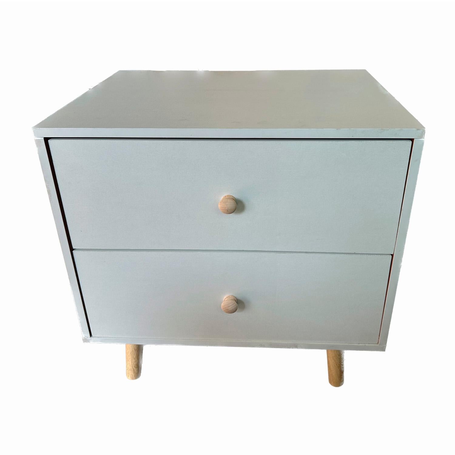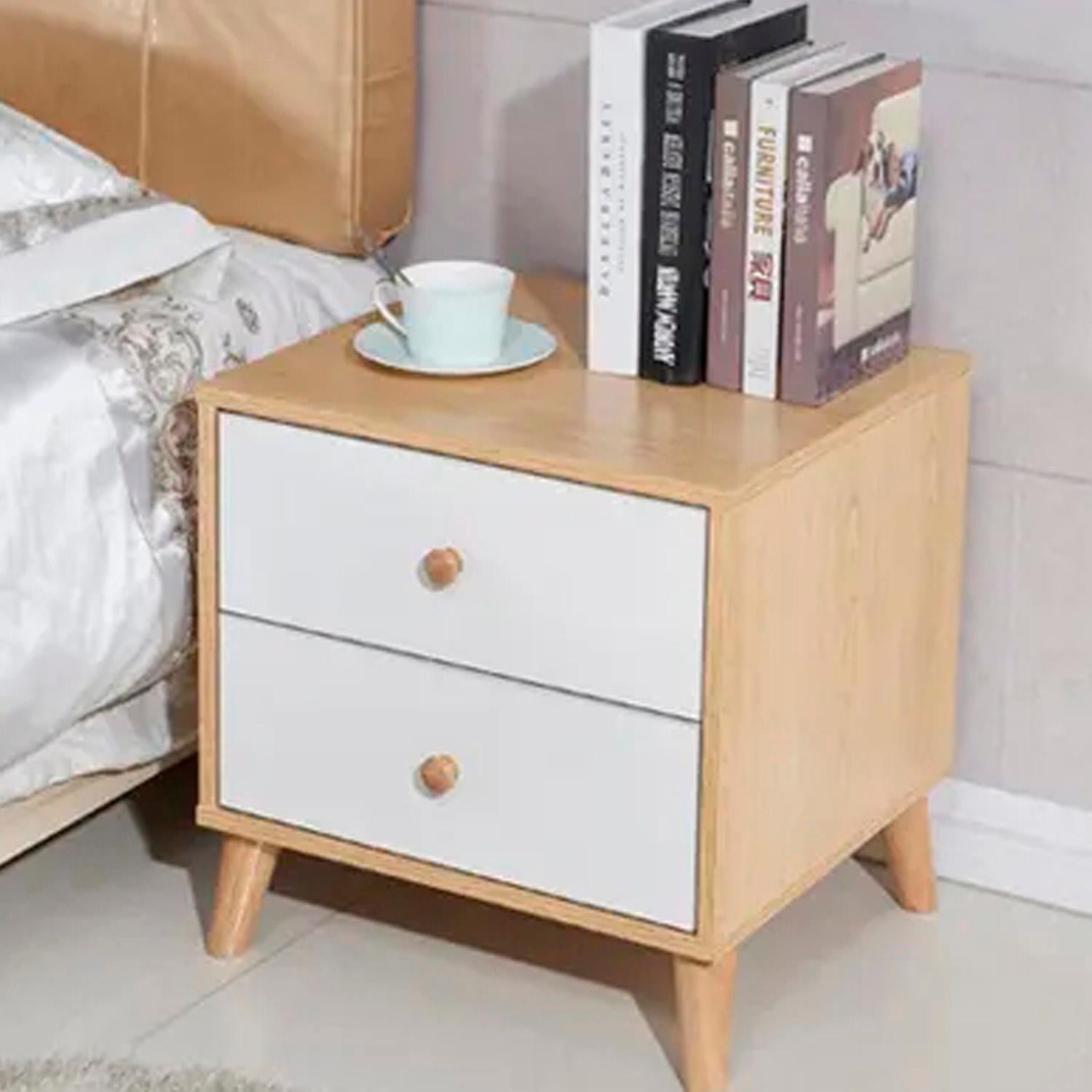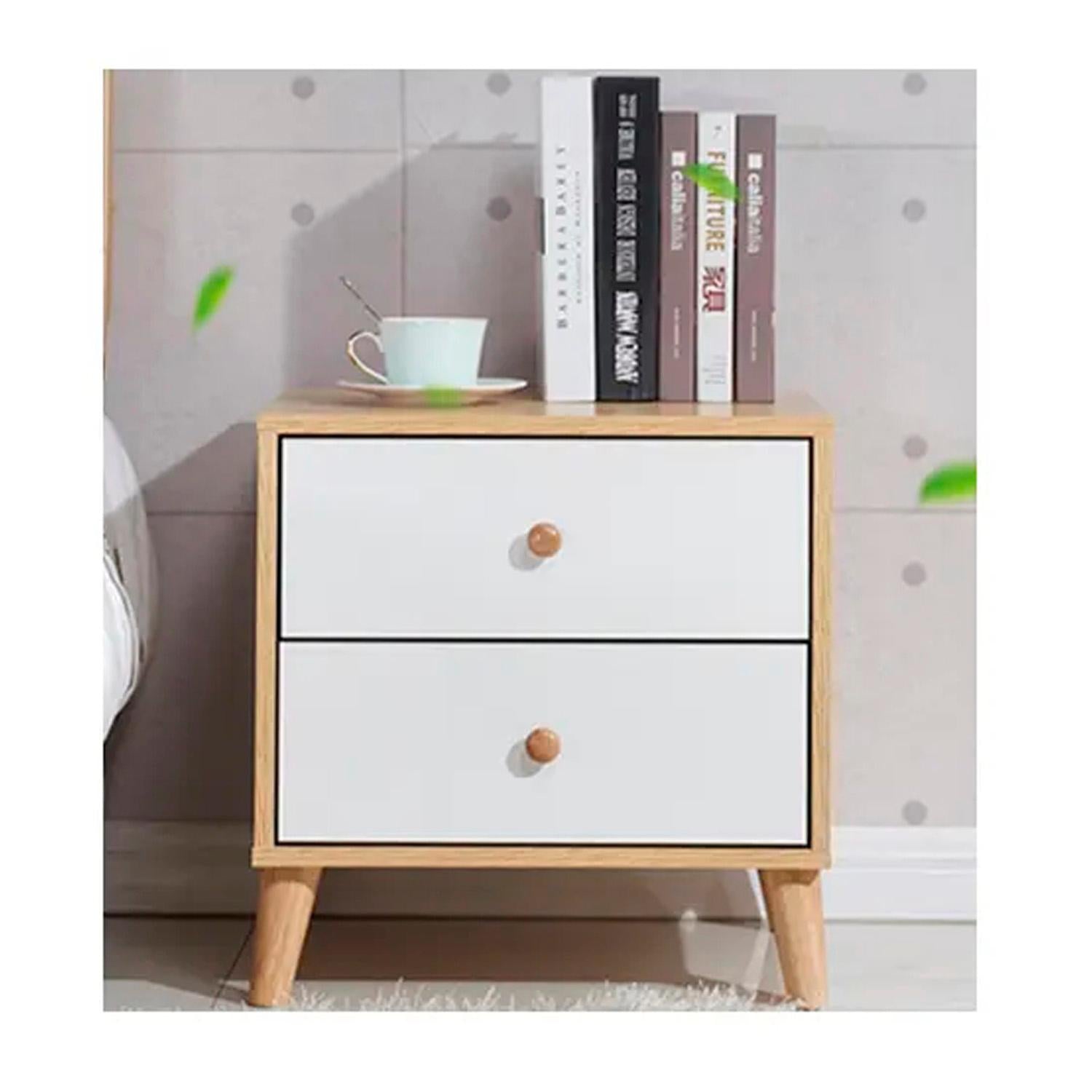 Mesa de noche con 2 cajones: esta mesita de noche cuenta con 2 cajones, lo que le proporciona espacio de almacenamiento adicional y se desliza fácilmente.