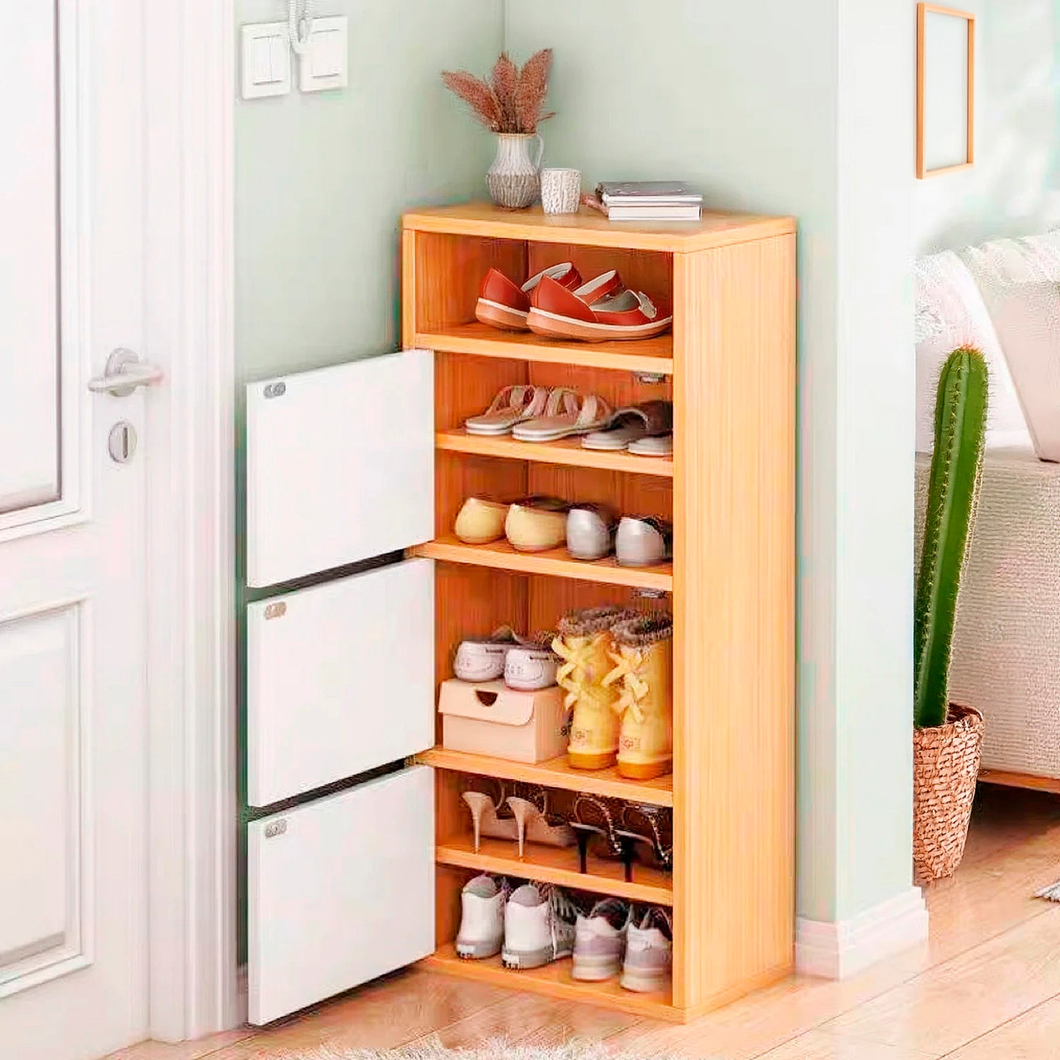 En resumen, este zapatero gabinete comoda con organizador de zapatos y 3 puertas es una solución práctica y estilizada para mantener tu calzado organizado y tu espacio ordenado.